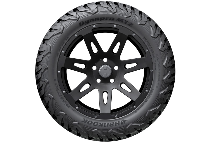 Грязевая модель Hankook Dynapro MT2 получила агрессивный рисунок протектора, ориентированный на обеспечение максимальной тяги на бездорожье и подавление дорожного шума. Плечевые блоки V-образной формы под определённым углом переходят на боковые стенки. Они призваны усиливать сцепление с дорогой, повышать износостойкость и защищать от повреждений. Между ними встречно вклинены выступающие резиновые элементы треугольной формы, обеспечивающие дополнительную защиту боковин. Форма массивных плечевых блоков напоминает раскрытые раковины морских гребешков. Благодаря их чередованию и «копающей» функции шины Dynapro MT2 уверенно ведут себя как в грязи, так и на каменистой местности, песке и гравии.